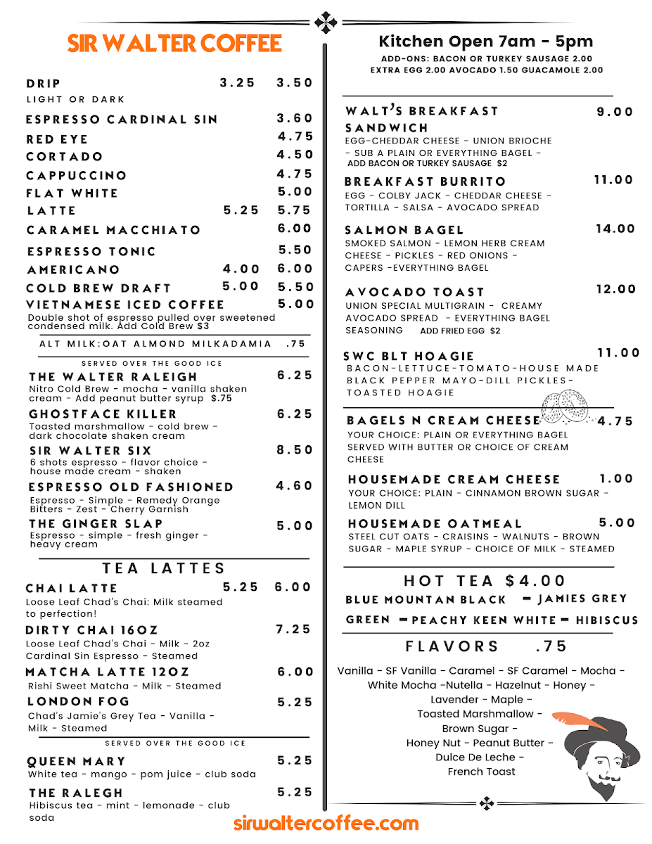 Welcome to Sir Walter Coffee, a hidden gem nestled in the heart of Raleigh, NC. This charming café crafts an exceptional menu that masters the art of both beverages and light bites. From the first sip of their expertly brewed Vietnamese coffee to the last crumb of a savory southern pimento sammy, each item is a testament to quality and creativity.
